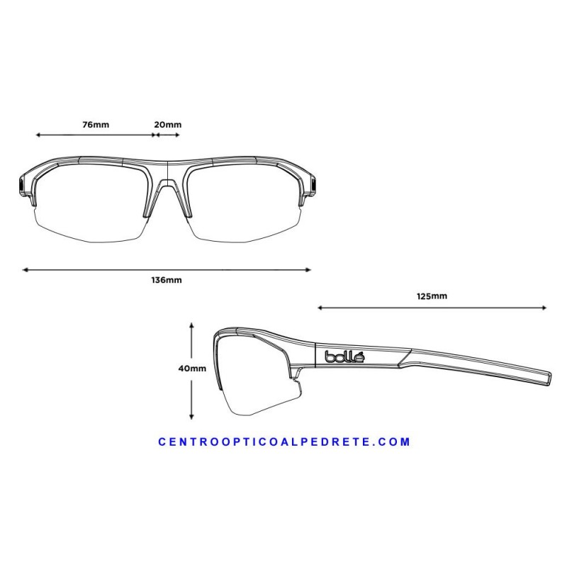 Prescription glasses with original Bolle lenses, don't limit yourself, ask us and we will tell you how to get and conditions of these glasses with Original Bolle lens.Las varillas ajustables permiten la adaptación de la montura a todo tipo de rostno, asegurando así un encaje perfecto bajo cualquier situación.