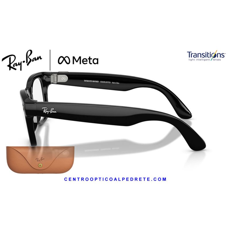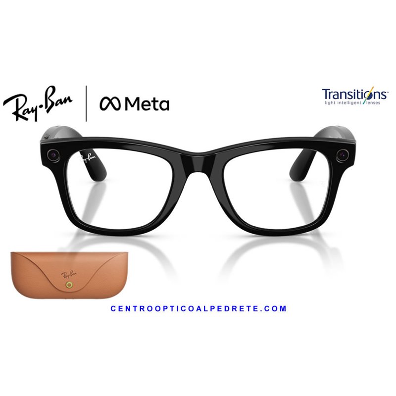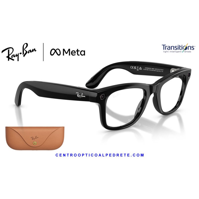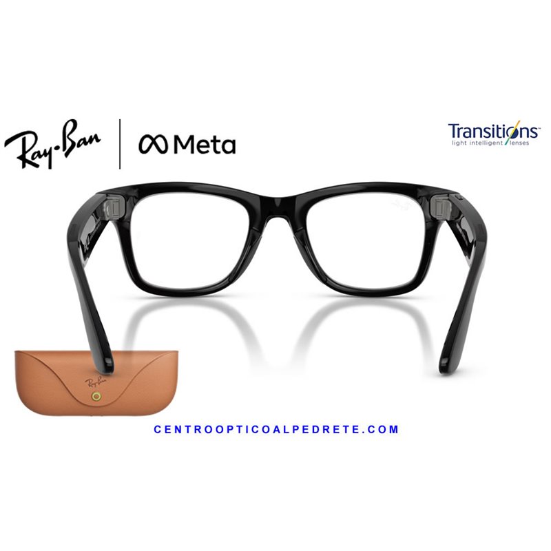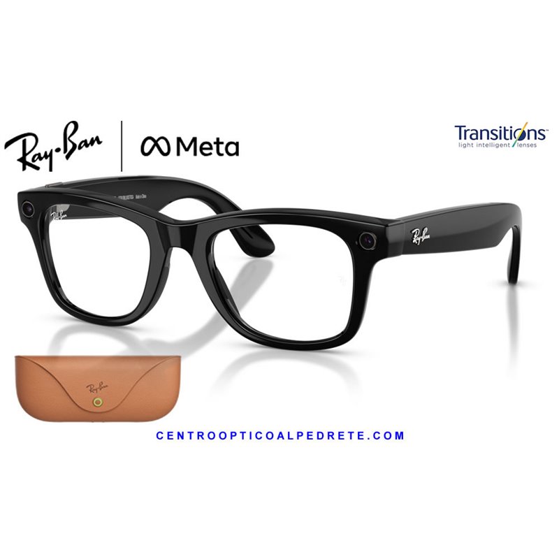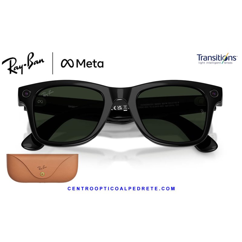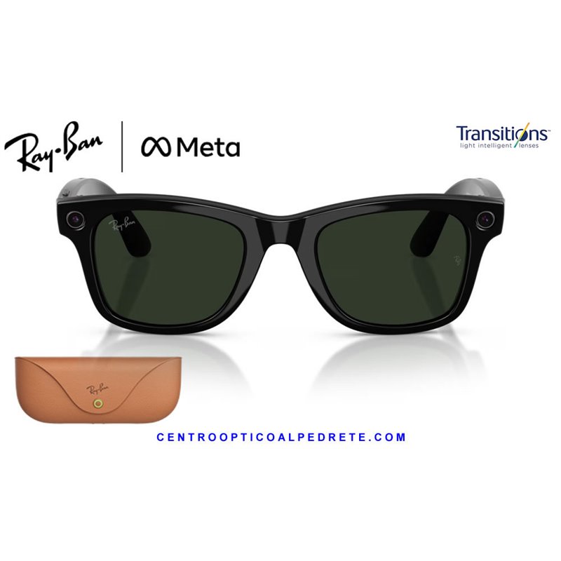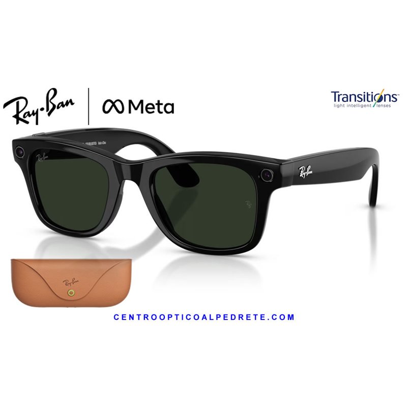 *Ray-Ban Meta Wayfarer Glossy Black with Clear/Graphite Green Transitions lenses. The icon with AI, 12MP camera and integrated audio.